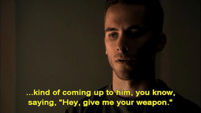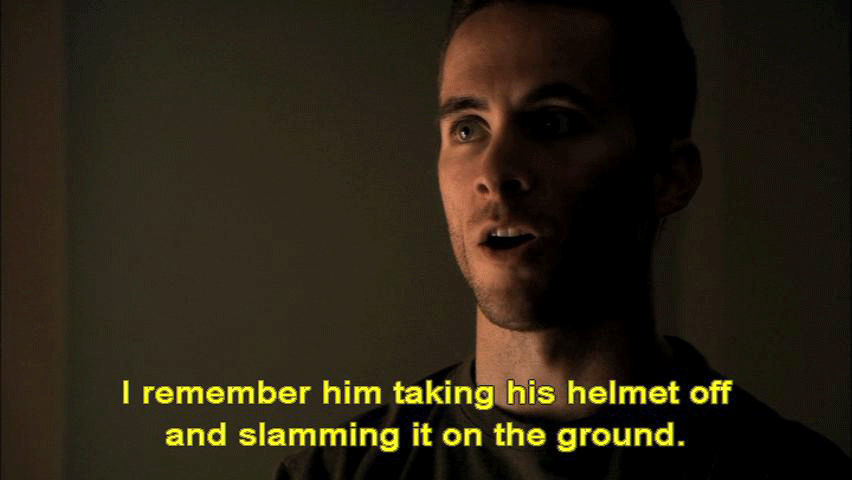 He got out of the vehicle ... ... and you could see there was a million things going through his head. There was absolute horror and shock ... ... and I remember him screaming several times. I remember him taking his helmet off and slamming it on the ground. I remember ... ... our medic, Doc ... ... kind of coming up to him, you know, saying, "Hey, give me your weapon." |