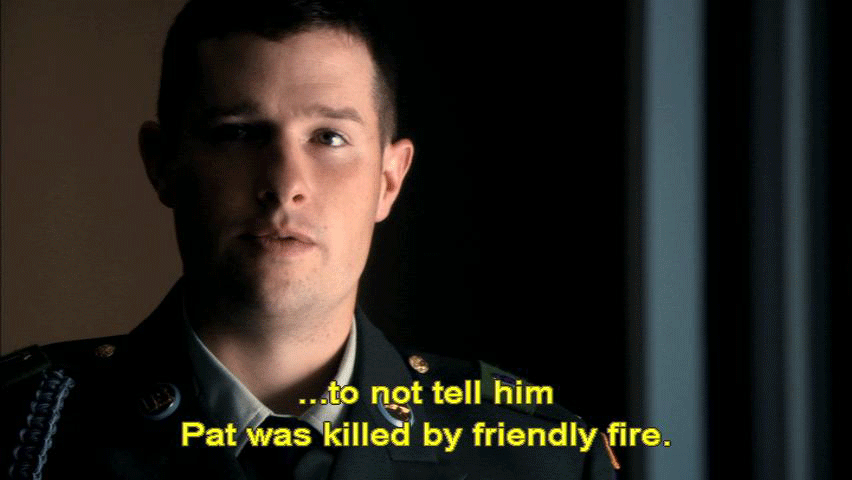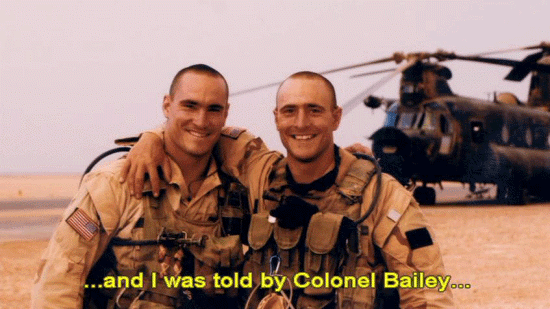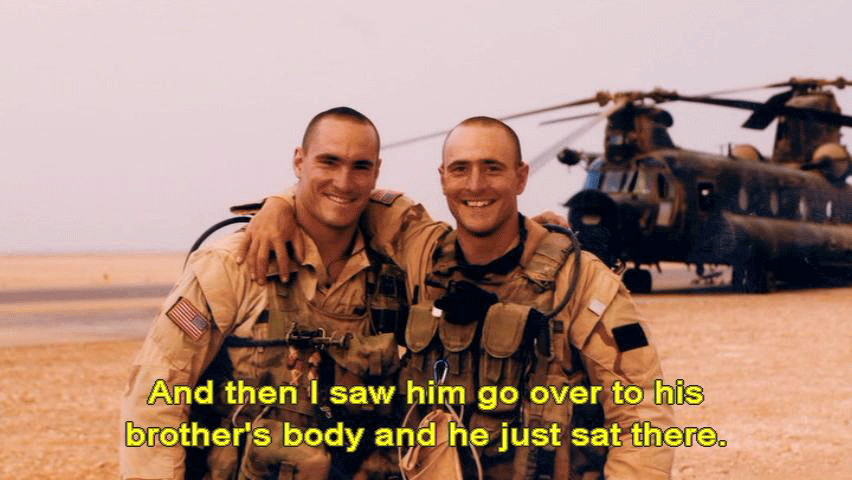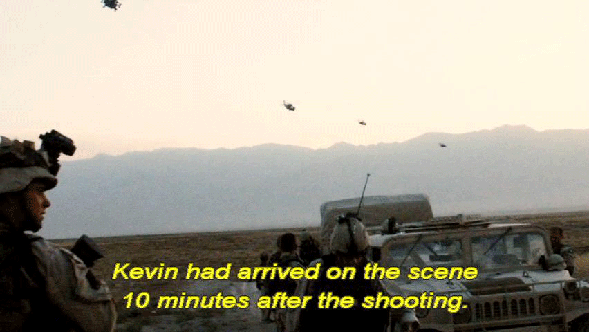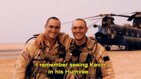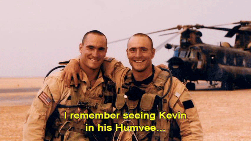 And then I saw him go over to his brother's body and he just sat there. I remember seeing Kevin in his Humvee ... ... and I was told by Colonel Bailey ... ... to not tell him Pat was killed by friendly fire. [Pfc. Bryan O'Neal, 2/75 Ranger Battalion] You know, "Your career is on the line. Do not tell Kevin exactly what happened." [Narrator] Kevin had arrived on the scene 10 minutes after the shooting. |