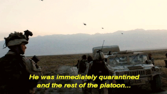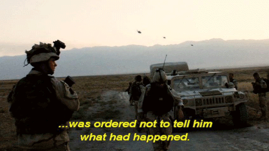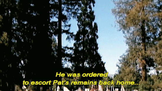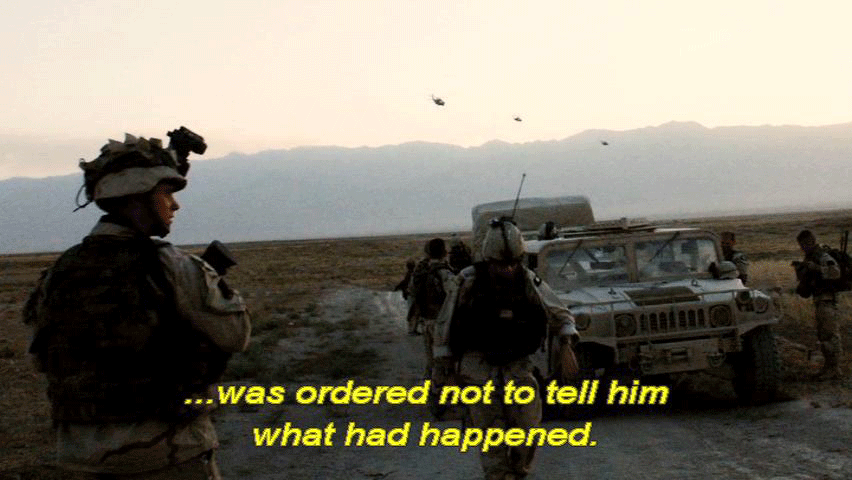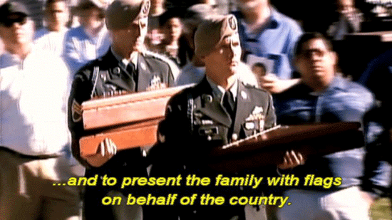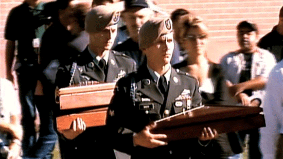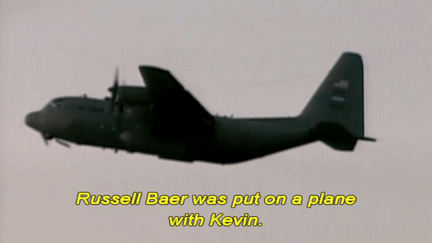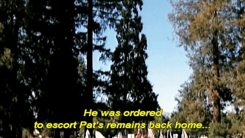 He was immediately quarantined and the rest of the platoon ... ... was ordered not to tell him what had happened. Russell Baer was put on a plane with Kevin. He was ordered to escort Pat's remains back home ... ... and to present the family with flags on behalf of the country. |