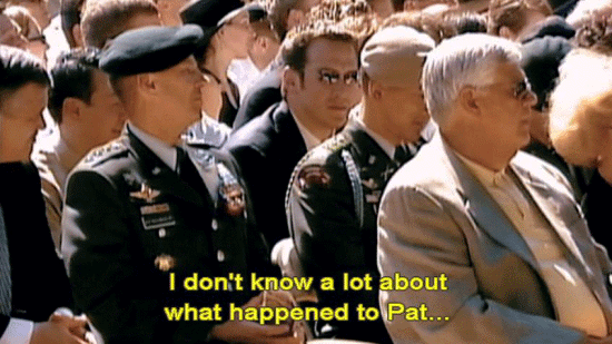 ... we probably felt the most sense of comfort from people from the military. And we were very honored to see that General Kensinger was present. [Patrick Tillman Sr., Pat's father] I wanna thank anybody involved in the military ... ... especially the Rangers. Outstanding human beings -- [Mary Tillman] Then to find out that they were the very people to lie to us ... ... it's outrageous. [Patrick Tillman Sr., Pat's father] I don't know a lot about what happened to Pat ... |