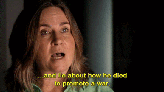 ... but the last few days have not been very pleasant. It's only been a week and it ain't getting any better. [Mary Tillman] It's a horrible thing to lie. It's an atrocity that they would take a young man with honorable intentions ... ... who served his country ... ... and lie about how he died to promote a war. To use him as a political -- A propaganda tool, basically. |