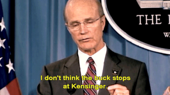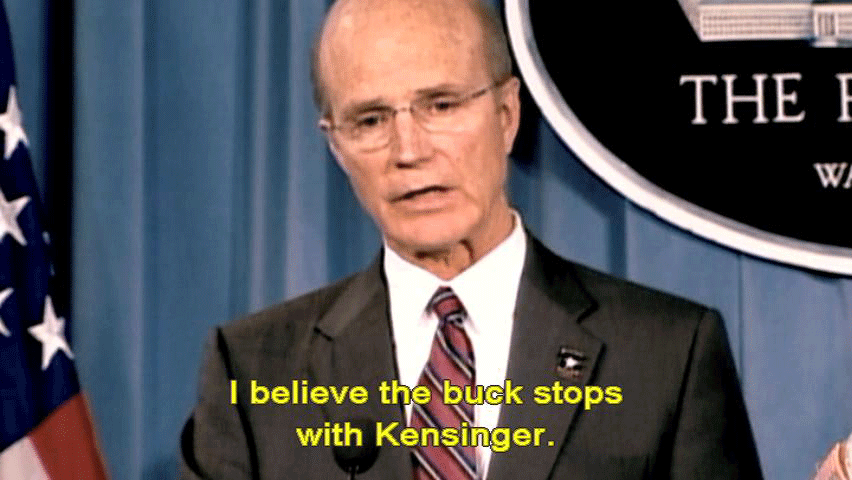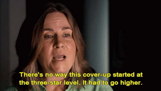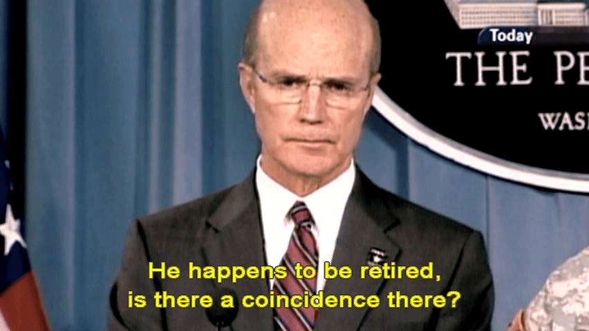I'm just trying to make sense of that. He happens to be retired, is there a coincidence there? [Army Secretary Pete Geren] The fact that he -- [Reporter] He's the only one who's really being singled out. [Army Secretary Pete Geren] I believe the buck stops with Kensinger. He was the senior leader in the chain of command for -- [Mary Tillman] I don't think the buck stops at Kensinger. There's no way this cover-up started at the three-star level. It had to go much higher than that. |