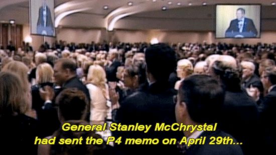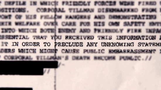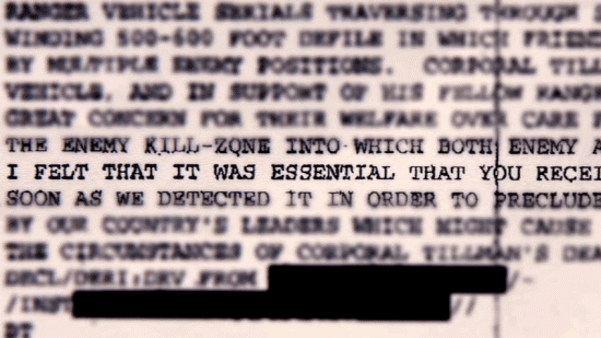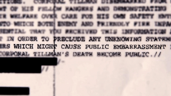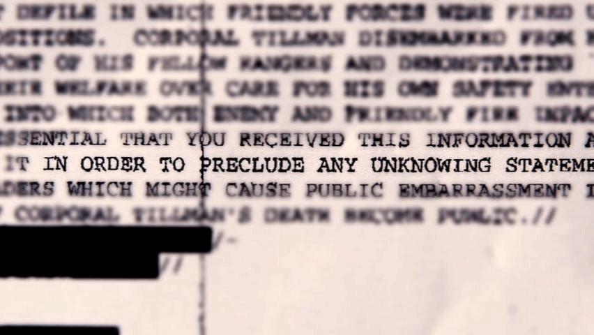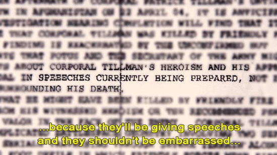[Narrator] General Stanley McChrystal had sent the P4 memo on April 29th ... ... after White House speechwriters had requested details ... ... about Pat's death from the Pentagon. [Mary Tillman] The P4 memo states they must warn the president about this ... ... because they'll be giving speeches and they shouldn't be embarrassed ... |