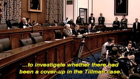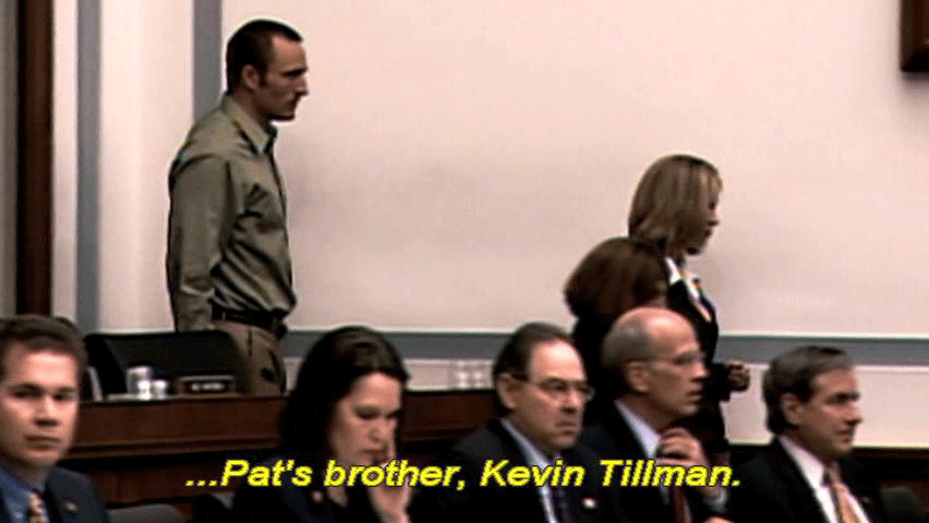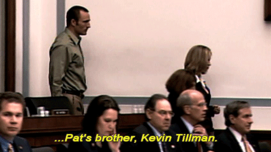 ... and in April 2007, the House of Representatives convened hearings ... ... to investigate whether there had been a cover-up in the Tillman case. The first testimony given was from the man ... ... who had remained silent throughout the ordeal ... ... Pat's brother, Kevin Tillman. |