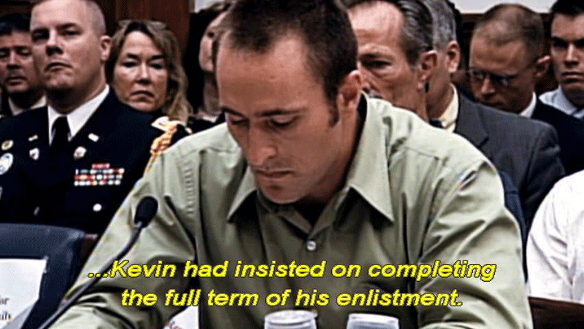 Even after discovering that the entire platoon ... ... had been lying to him about the fratricide ... ... Kevin had insisted on completing the full term of his enlistment. Once he got out of the Army, Kevin went into seclusion ... ... refusing, until now, to speak publicly about his brother. |