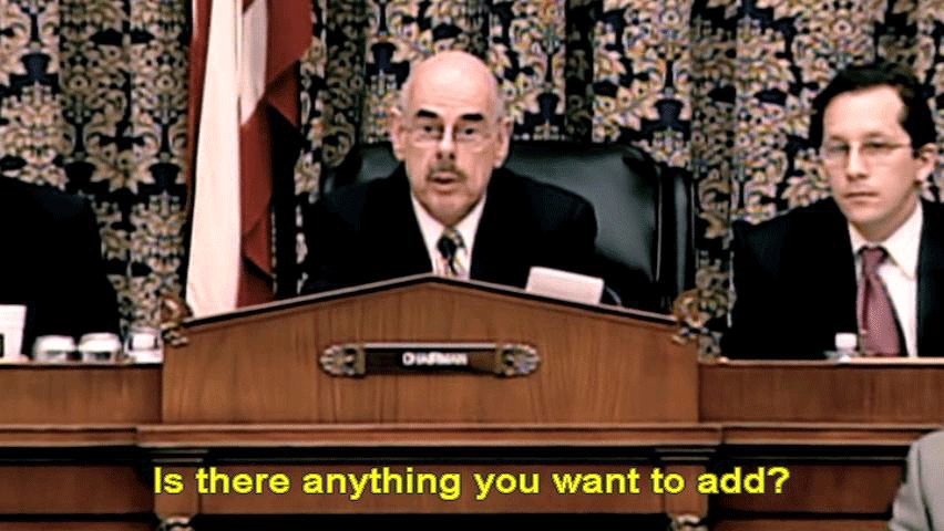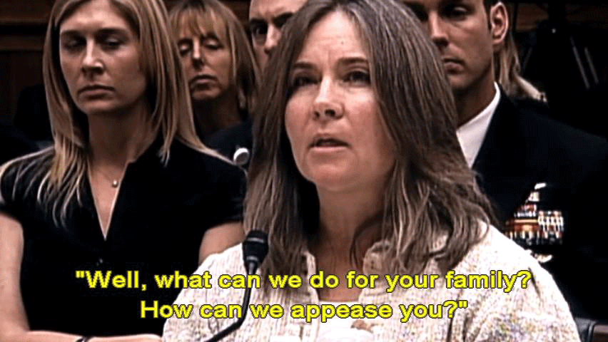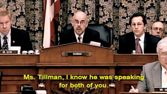 [Rep. Henry Waxman] Thank you very much for your testimony. Ms. Tillman, I know he was speaking for both of you. Is there anything you want to add? [Mary Tillman] I would like to say ... ... we have been asked, over and over again: "Well, what can we do for your family? How can we appease you?" |