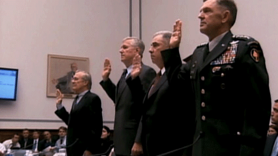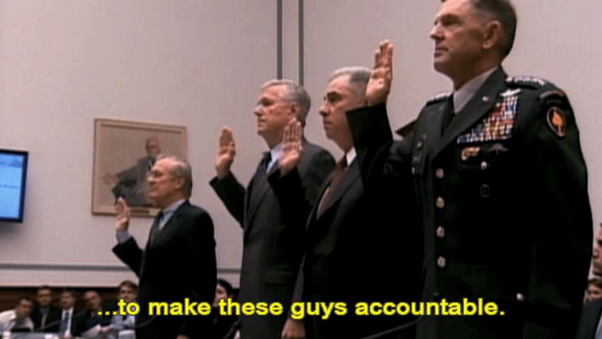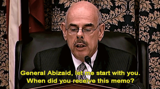 You know, the former Secretary of Defense. And then we also had people that have the power ... ... to make these guys accountable. [Rep. Henry Waxman] General Abizaid, let me start with you. When did you receive this memo? |