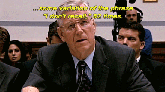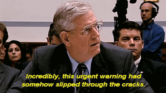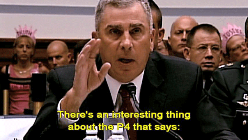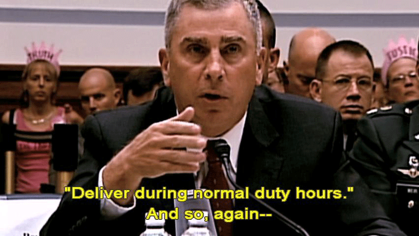 ... some variation of the phrase "I don't recall," 82 times. [Former Chairman Joint Chiefs General Richard Myers, Retired] I just don't know. [Narrator] Incredibly, this urgent warning had somehow slipped through the cracks. [U.S. Cent Com General John P. Abizaid] There's an interesting thing about the P4 that says: "Deliver during normal duty hours." And so, again -- |