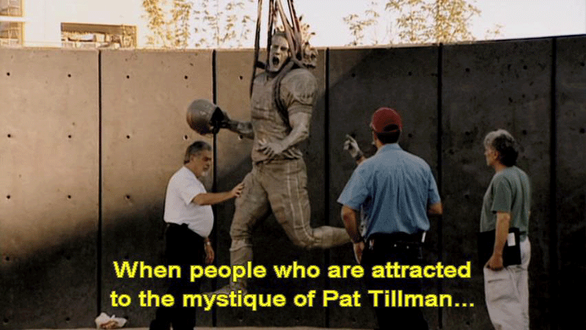 When people who are attracted to the mystique of Pat Tillman ... ... begin to actually study who Pat Tillman was ... ... they're gonna find out that this story doesn't fit ... ... into something that's all tidy and mythic. The danger of something like this ... ... is it's an opportunity for reality to break through. |
