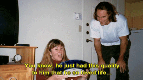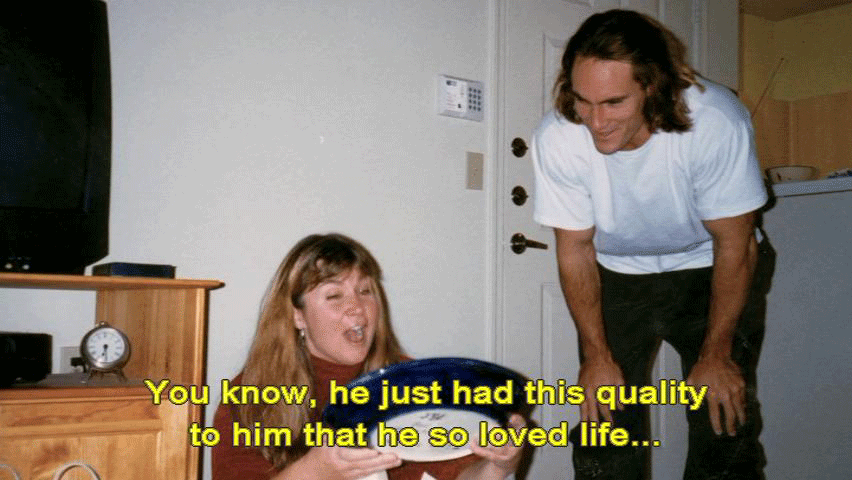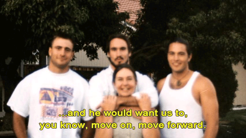 You know, he just had this quality to him that he so loved life ... ... and he would want us to, you know, move on, move forward. I feel like, at least I've done what I can for him. And now, it's just the idea of just kind of moving on ... ... and just kind of bringing him with us, sort of. |