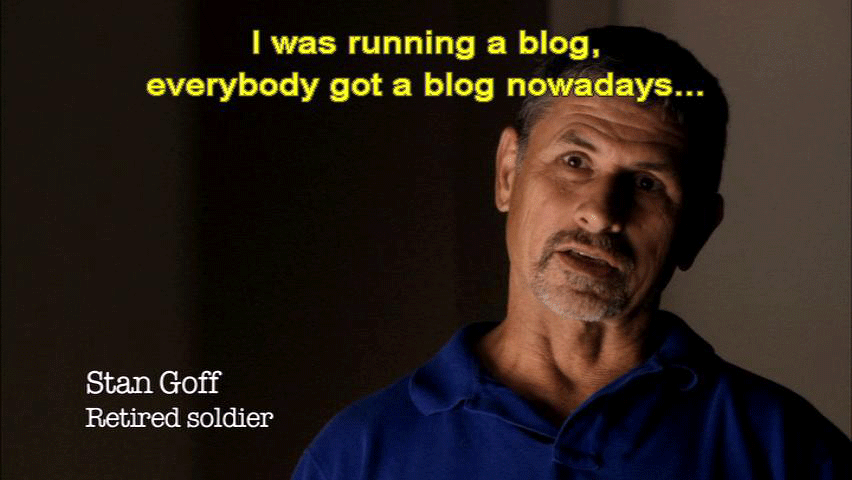 ... when I didn't have students, or when I had my break or at lunch. I'd call the medical examiner, the coroner. I'd call ballistic people trying to find someone that could answer questions. I mean, I was just making calls all the time. Along the way, I'd encounter people that were able to help us. And at somewhere along the line, we got in touch with Stan Goff. [Stan Goff, Retired soldier] I was running a blog, everybody got a blog nowadays ... |