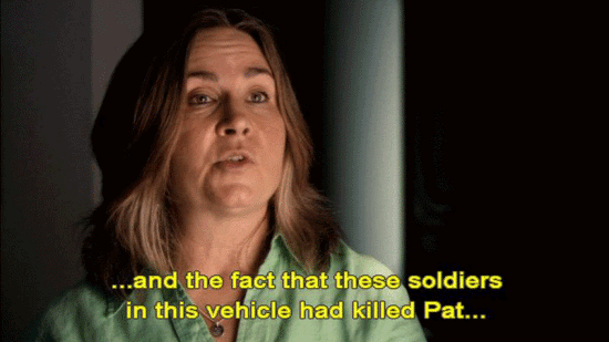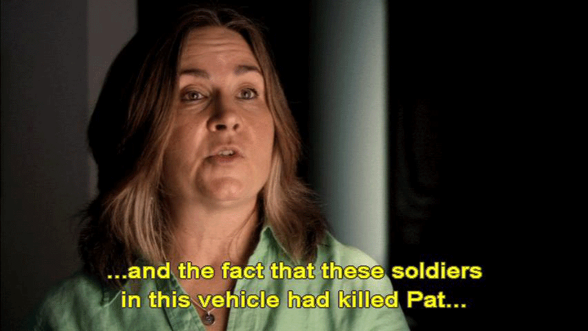 ... we started to become familiar with aspects of it. [Mary Tillman] I wanna make this very clear, when we initially heard of this fratricide ... ... and the fact that these soldiers in this vehicle had killed Pat ... ... we felt very bad for them, to have to live with this. We thought it was just some horrible accident. |