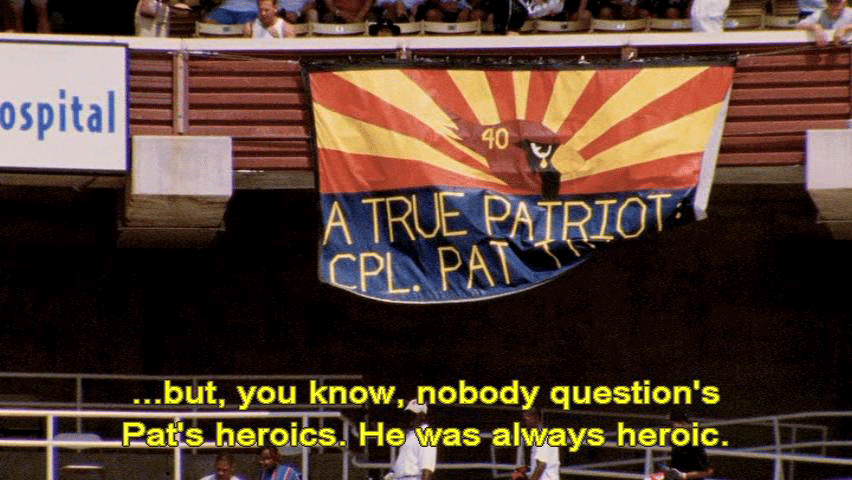 [Mary Tillman] I think they just thought, if they spun the story and we found out ... ... we'd just keep it quiet because we wouldn't want to diminish ... ... his heroism or anything like that ... ... but, you know, nobody questions Pat's heroics. He was always heroic. What they said happened, didn't happen. They made up a story, and so you have to set the record straight. The Tillman Story [Newscaster 1] [Friday, April 23, 2004] Good evening, thanks for joining us -- |