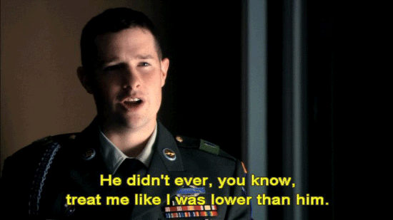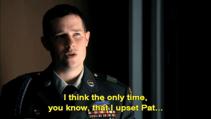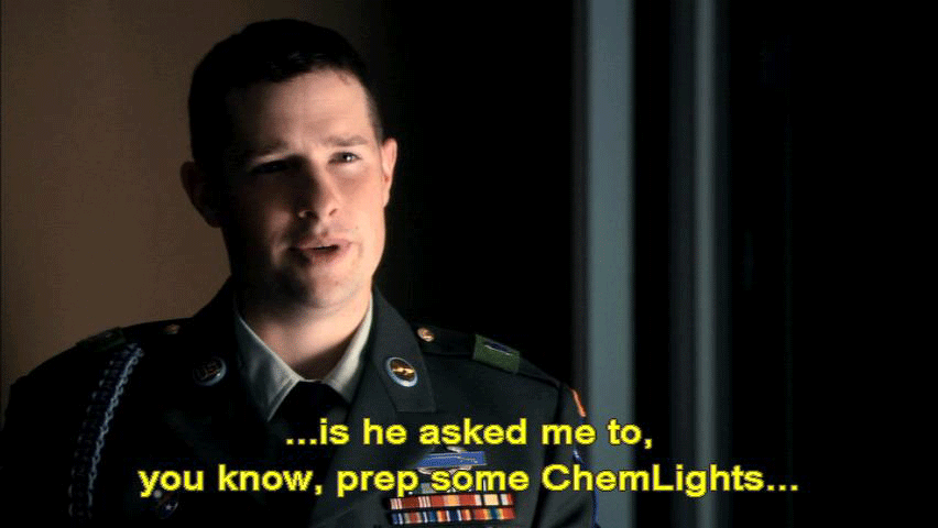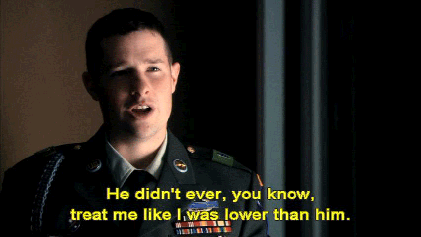He didn't ever, you know, treat me like I was lower than him. I think the only time, you know, that I upset Pat ... ... is he asked me to, you know, prep some ChemLights ... ... for an objective we had the next day ... ... and I forgot, you know, I was doing other things. And he basically let me know that I disappointed him ... ... that I didn't do what he wanted me to do. And that really, you know -- |