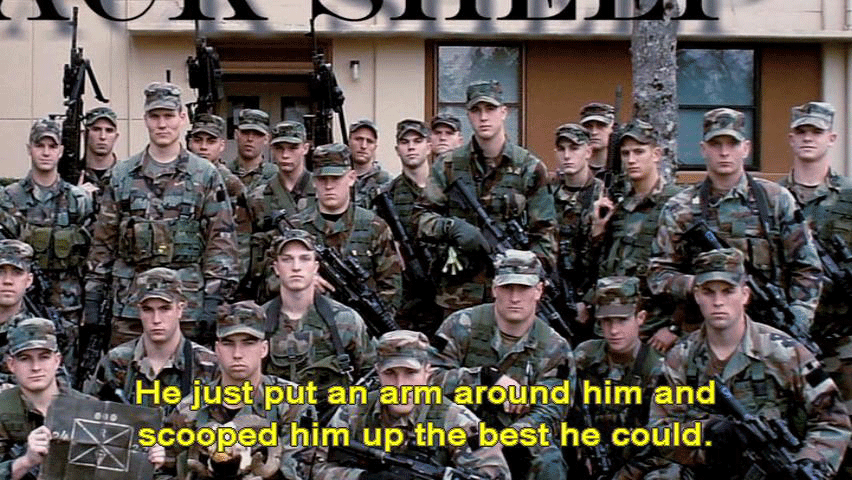 He just put an arm around him and scooped him up the best he could. [Pfc. Bryan O'Neal, 2/75 Ranger Battalion] Everyone was actually envious that he was my team leader. ... that little scrawny me would be working with this huge football player. I blamed myself for quite some time that maybe ... ... you know, Pat's not in a place where he should be ... ... because I didn't put forth more effort. And, you know, it's something I still think about today. |