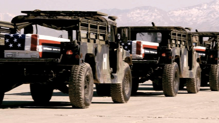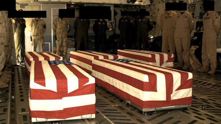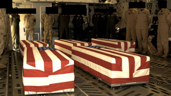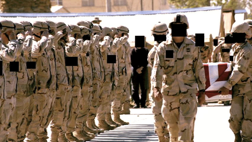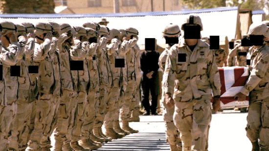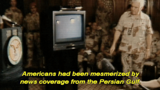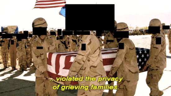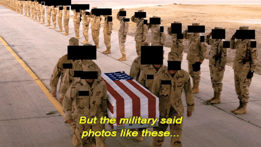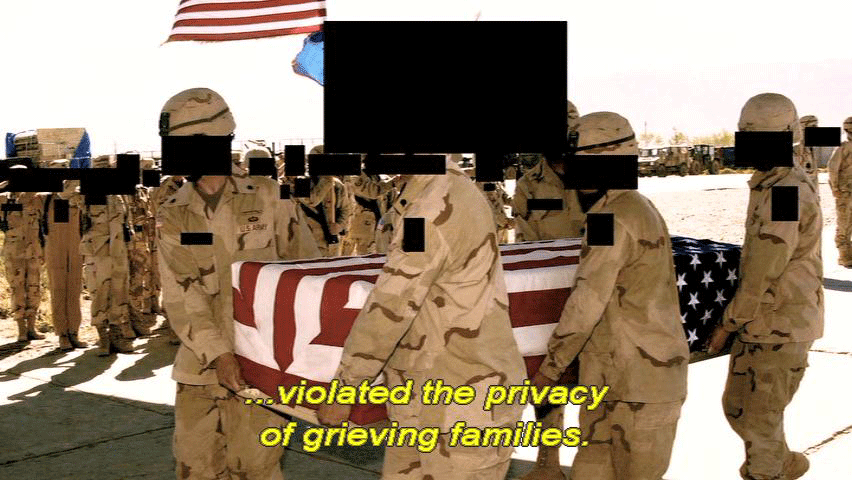[Narrator] Americans had been mesmerized by news coverage from the Persian Gulf. But the military said photos like these ... ... violated the privacy of grieving families. |