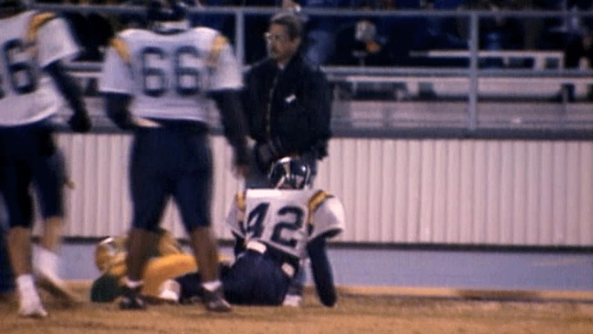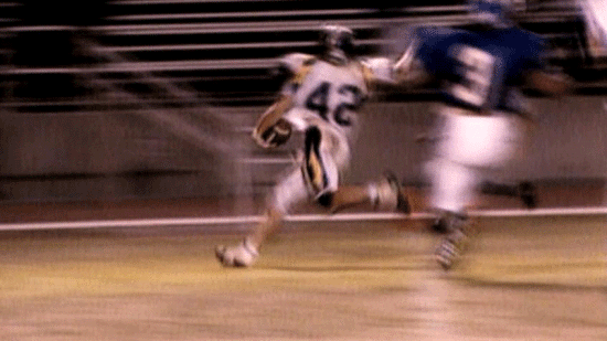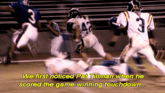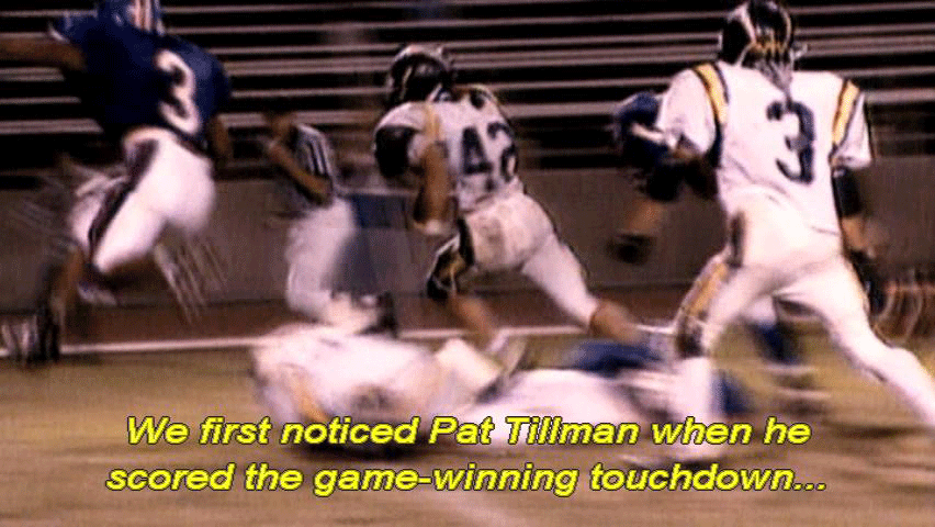 [Announcer] We first noticed Pat Tillman when he scored the game-winning touchdown ...