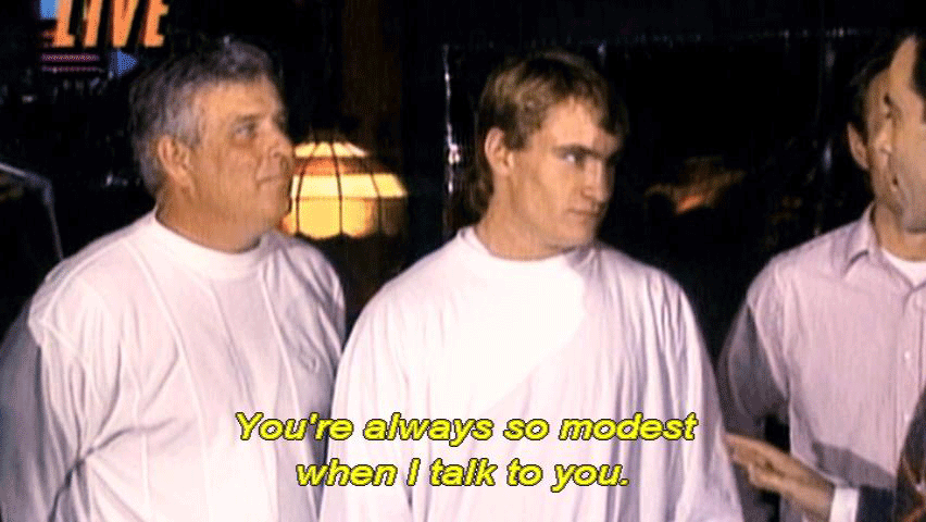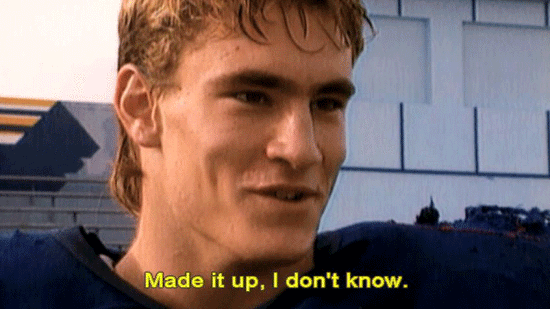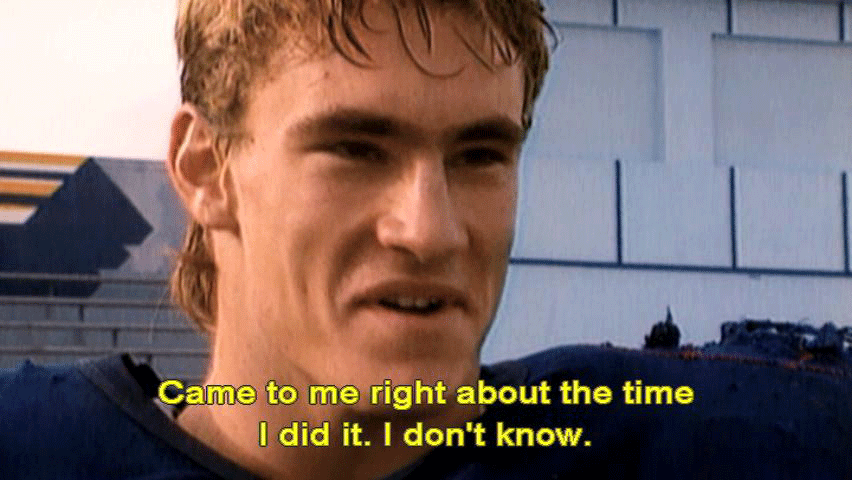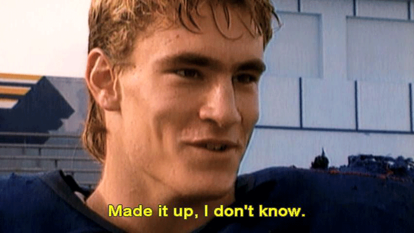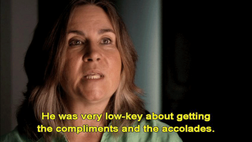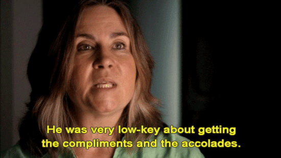 [Pat Tillman] Made it up, I don't know. Came to me right about the time I did it. I don't know. [Mary Tillman] He was very low-key about getting the compliments and the accolades. It kind of embarrassed him. [Spokesman] You're always so modest when I talk to you. |