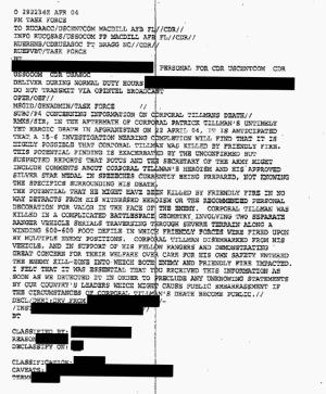 any information even rumor that Cpl. Tillman was killed by anybody